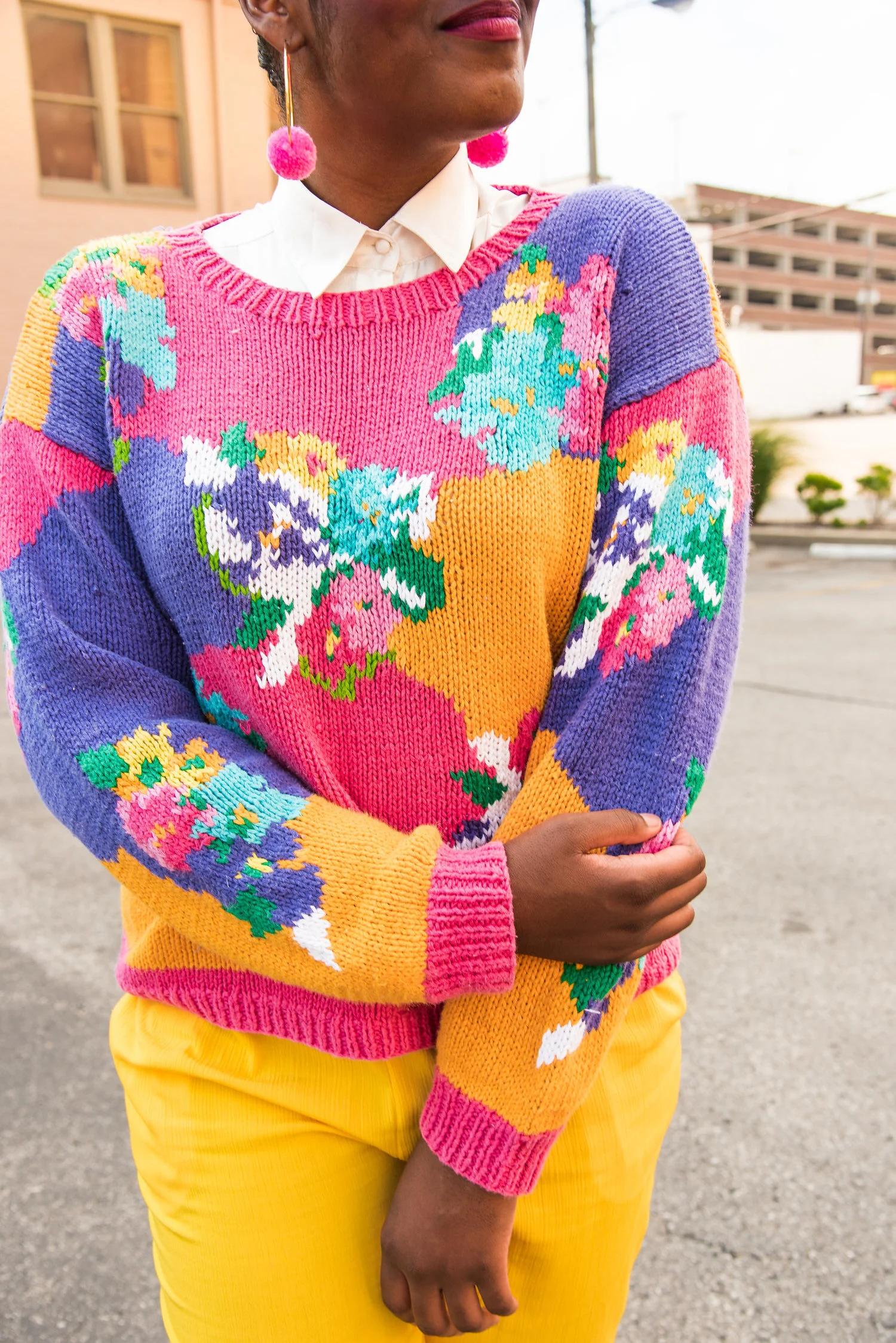 The Bold and Floral Hand Knit Sweater